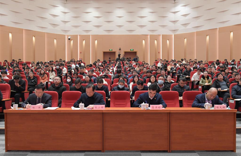 校党委书记杨斌在主持思政课时表示,吴忠琼书记的思政课主题鲜明、内容丰富、数据详实、思想深刻,对学校深入掌握习近平新时代中国特色社会主义思想的世界观和方法论,坚持好、运用好贯穿其中的立场观点方法具有重要的指导意义。杨斌就学校深入学习贯彻习近平新时代中国特色社会主义思想,提出了三点意见:一是在抓好学习领会上下功夫,在深学细悟中进一步提高政治站位;二是在抓好宣讲解读上下功夫,切实凝聚师生员工同心同德的强大合力;三是在抓好贯彻落实上下功夫,加快推动学校事业高质量跨越式发展。