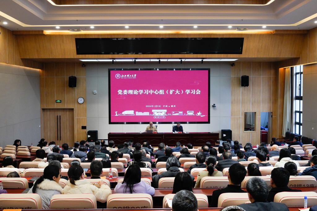 在三江校区启航会议中心1号会议厅召开党委理论学习中心组(扩大)学习会。江西省公安厅国保总队政委胡频庚受邀作题为《维护高校政治安全》的专题辅导报告。全体在家校领导、校党委常委、学校党委理论学习中心组全体成员、各二级党组织书记以及机关党委党员共计100余人参加会议。会议由校党委副书记罗仙平主持。