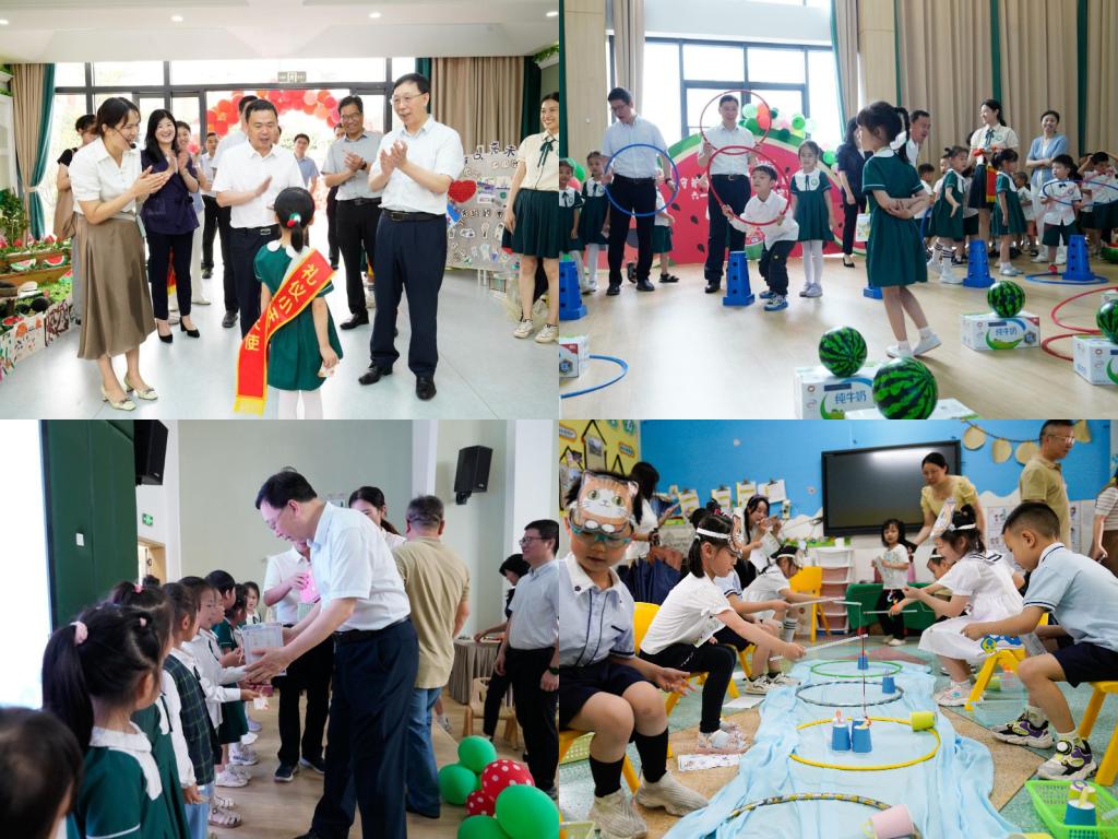 在章贡区第二实验幼儿园(理工园区),杨斌一行详细了解幼儿园办学理念和教学特色,观看了孩子们的“六一西瓜节”主题活动,与孩子们亲切交流互动。杨斌充分肯定了幼儿园在提升教育质量、特色课程布置、优化办学品质等方面取得的成绩,他衷心祝愿幼儿园今后越办越好,希望孩子们能够在幼儿园里无忧无虑地快乐学习、茁壮成长,成为建设祖国、回报家乡、服务社会的有用之才。
