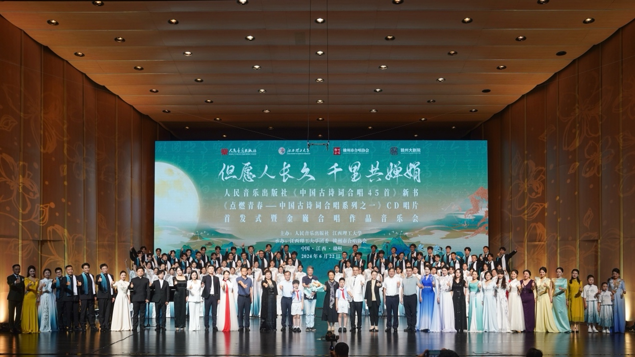本网讯 “以诗传情,以乐抒怀,走出剧场,那些被唱诵的诗词,依然萦绕在我的耳边。”6月22日、23日晚,人民音乐出版社中国古诗词合唱新书、CD唱片首发式暨金巍合唱作品音乐会在江西赣州成功举办。首发式由人民音乐出版社、抖阴