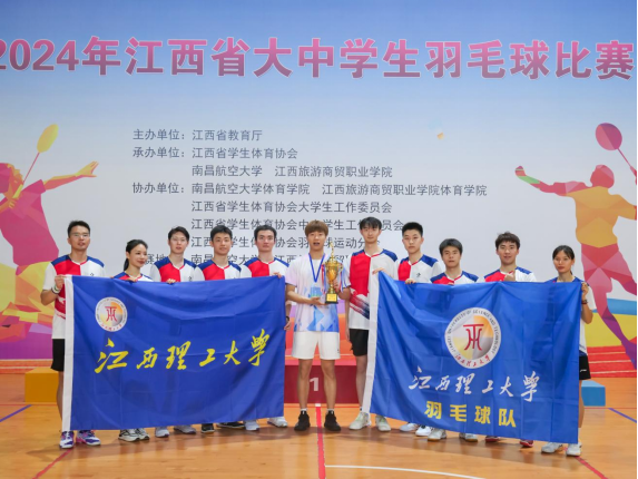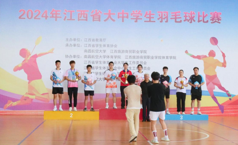 本网讯 6月17日,2024年江西省大中学生羽毛球比赛在南昌落下帷幕。抖阴 代表队表现出色,在体育与艺术学院刘君毅老师的专业指导下,全体运动员奋勇拼搏,获得了本科甲组男子团体冠军,本科甲组男子双打冠军、混合双打季军,团体总分二等奖的好成绩。