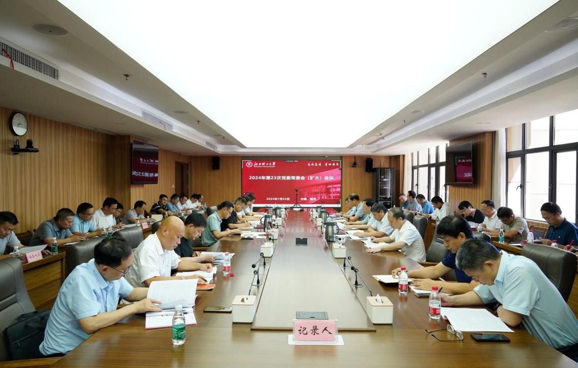 在濂溪楼2号会议室召开党委常委会(扩大)会议,深入学习党的二十届三中全会精神,传达学习全省领导干部会议精神,并就学校学习宣传贯彻全会精神进行部署。校党委书记杨斌主持会议并讲话,学校在家党委领导班子成员、党群部门主要负责人、二级党委书记出席会议。