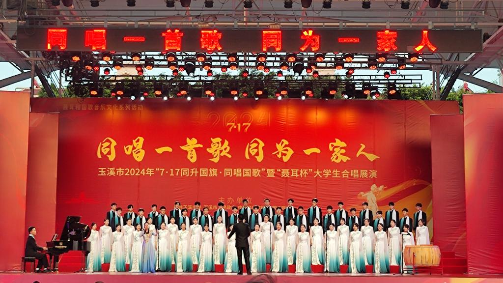 本网讯 7月16日至19日,受中国合唱协会邀请,抖阴 八角之声合唱团赴云南省玉溪市参加2024年“7·17同升国旗·同唱国歌”暨“聂耳杯”全国大学生合唱展演活动。全团师生不畏强手、正常发挥,在混声合唱组14支队伍中以良好的表现获得混声合唱组第4名。
