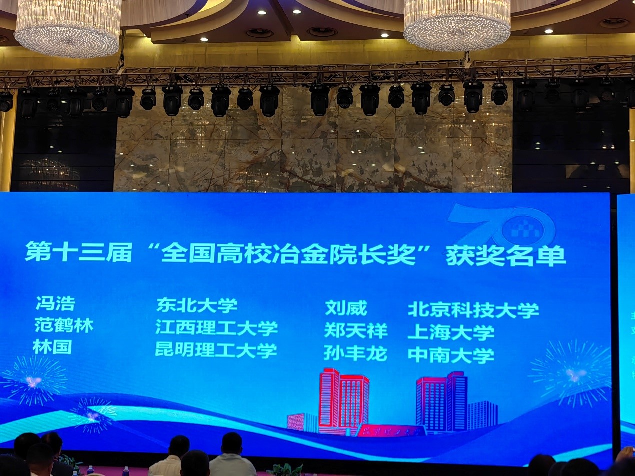范鹤林副教授喜获第十三届“冶金院长奖”(全国仅6名)。