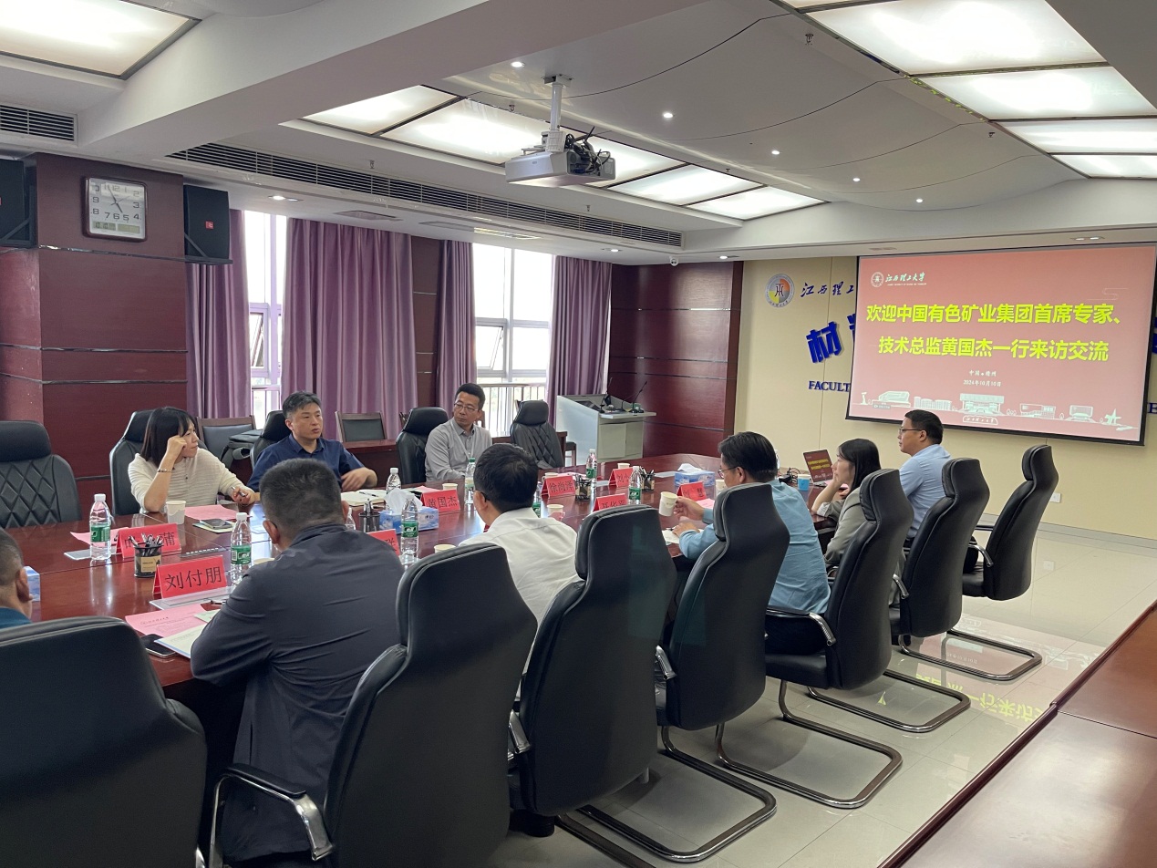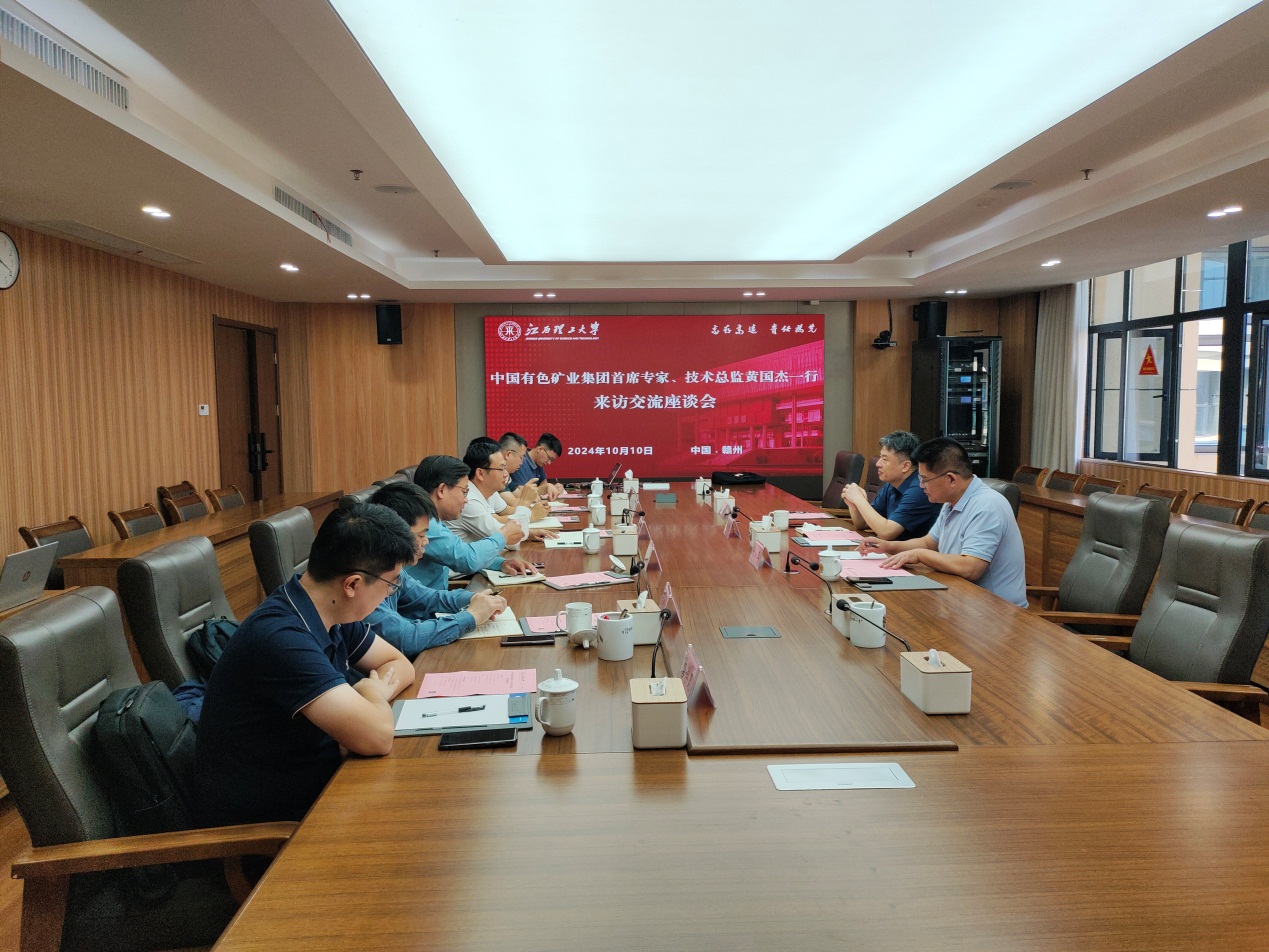本网讯 10月10日,中国有色矿业集团首席专家、技术总监黄国杰一行来访,校党委常委、党委宣传部部长盛晓明会见来宾并举行座谈交流会。双方就进一步推进校企业合作、加强科技创新和人才培养方面的合作,围绕深化产学融合、促进就业创业、提升科技需求对接、强化工程硕博士人才培养、招生就业等进行深入交流。