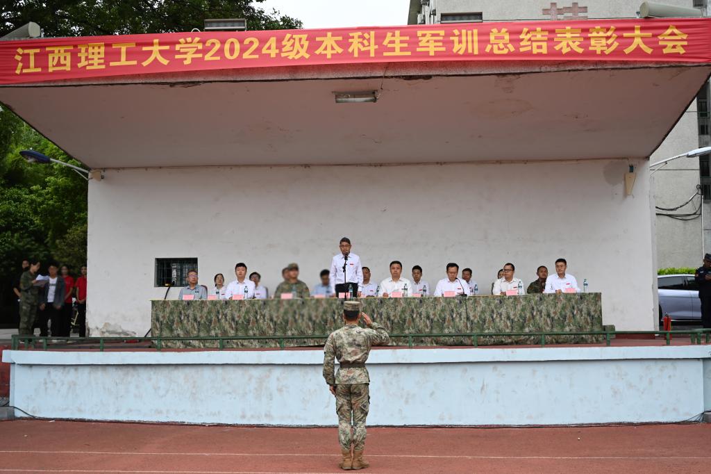 2024级本科生军训总结表彰大会在三江校区、红旗校区同步举行。校党委常委、副校长龚姚腾、董冰岩,校党委常委、党委统战部部长汪锋锁出席大会。校党委(校长)办公室、党委武装部、党委学生工作部、校团委等相关部门及学院负责人,承训部队领导及全体教官,2024级全体本科新生参加表彰大会。