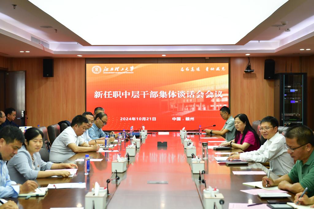 在濂溪楼三楼2号会议室召开新任职中层干部集体谈话会。校党委常委、纪委书记、监察专员刘飞出席会议并讲话,今年以来学校新提任的中层干部、轮岗交流干部等50人参加会议。校纪委副书记李旺主持会议。