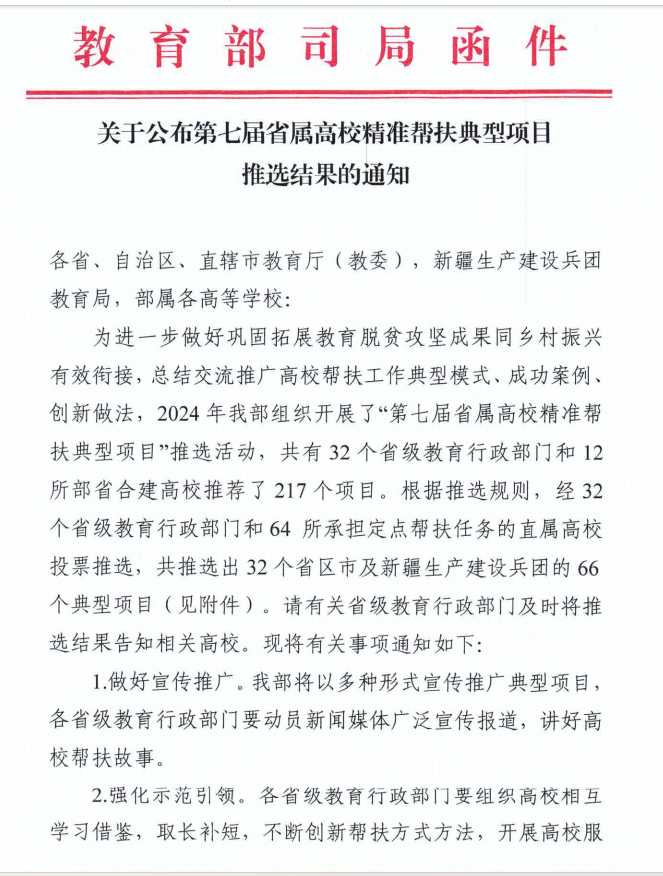 本网讯 近日,教育部公布了第七届省属高校精准帮扶典型项目推选结果,抖阴