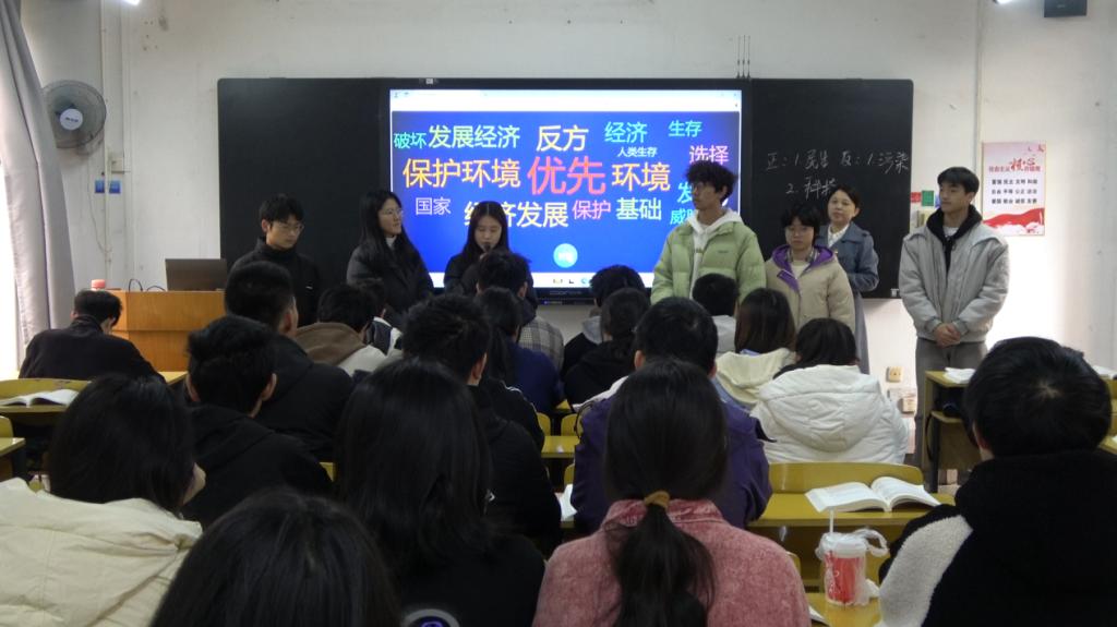 学院思政课教师武立敬在其讲授的《习近平新时代中国特色社会主义思想概论》课上,针对专题十二“建设社会主义生态文明”开展了“师生同台”教学活动。通过让学生介绍所学专业领域的生产活动并结合科技前沿成果思考绿色低碳转型的过程,将专业学习、学科发展和国家发展的大政方针紧密结合起来。这一教学模式充分体现了双主共进、精准滴灌、启发互动、亲师信道的教学理念,取得了显著成效,不仅丰富了思政课的教学内容,也极大地提升了学生的学习兴趣和参与度,真正让思政课“亲”起来。