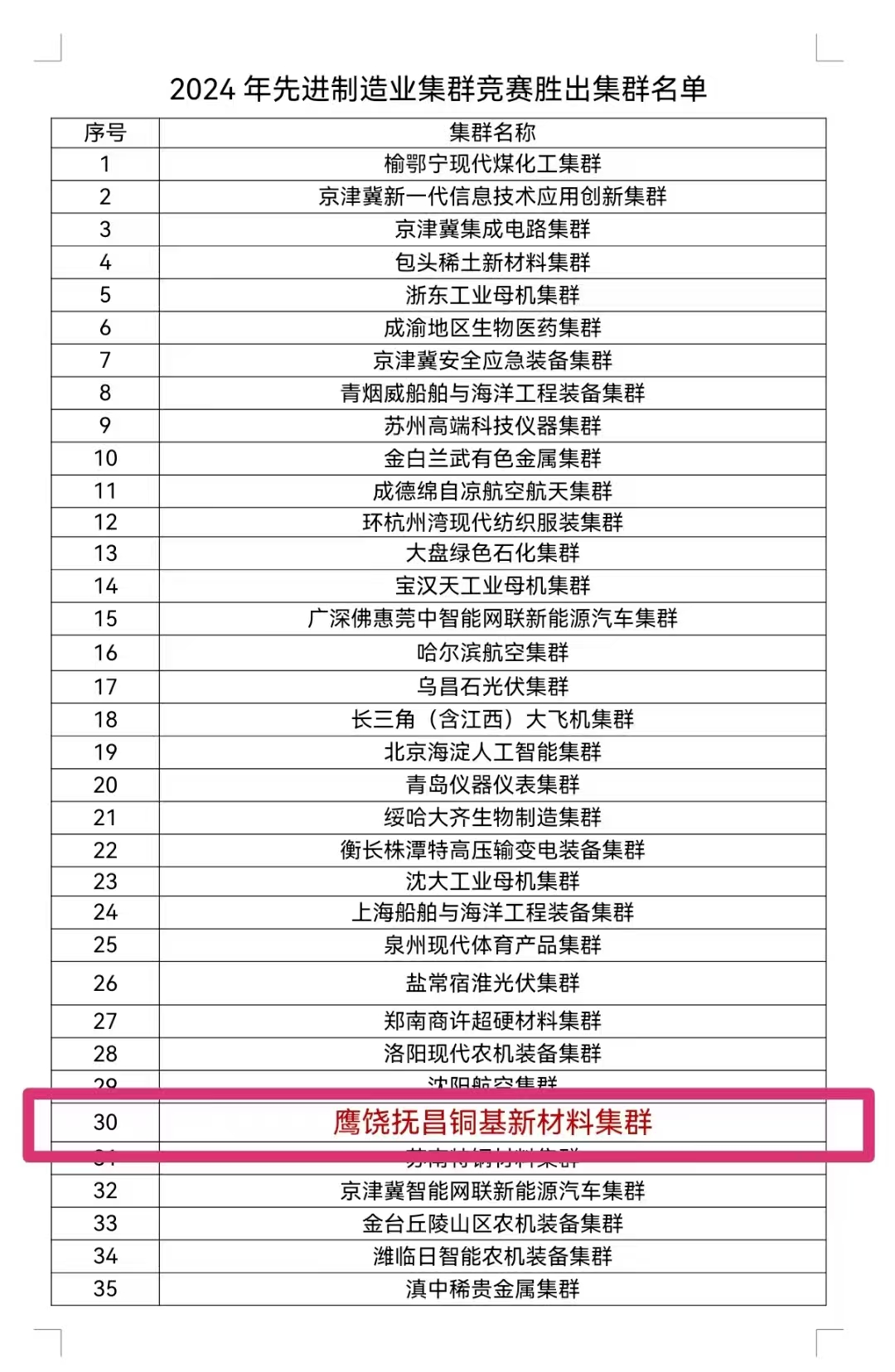 以“一个集群促进组织、一个产业联盟、一个制造业创新中心、一所现代产业学院”“四个一”全力推动鹰饶抚昌铜基新材料集群成功上榜2024年国家先进制造业集群名单。