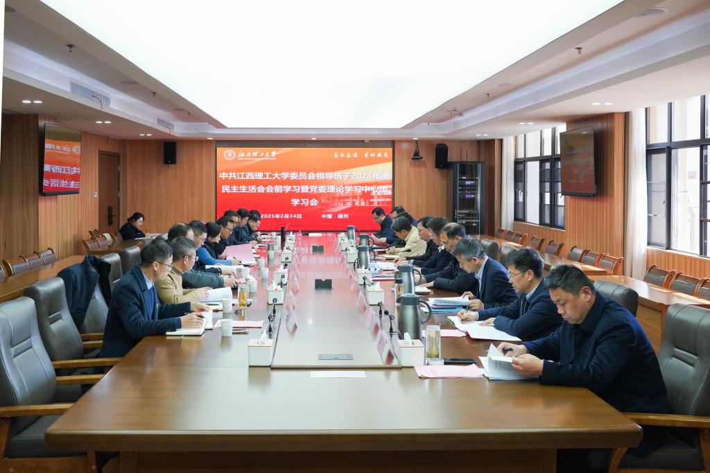 召开党委领导班子2024年度民主生活会会前学习暨党委理论学习中心组学习会,深入学习贯彻党的二十大和党的二十届二中、三中全会精神,学习领会习近平总书记关于党的建设的重要思想、关于党的自我革命的重要思想以及关于全面加强党的纪律建设的重要论述,重点学习习近平总书记在中央政治局民主生活会上的重要讲话精神、在二十届中央纪委四次全会上的重要讲话精神、在全国教育大会上的重要讲话精神和习近平总书记考察江西重要讲话精神,联系思想和工作实际,交流认识体会,为开好民主生活会打牢思想基础。