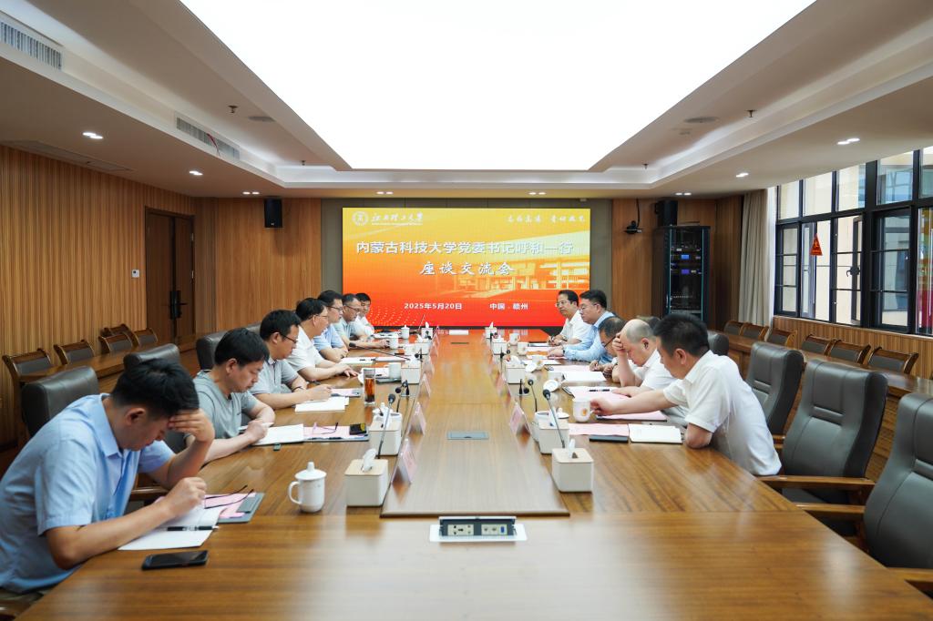 本网讯 5月20日上午,内蒙古科技大学党委书记呼和一行来访抖阴 ,并在三江校区濂溪楼1号会议室召开座谈交流会。校党委书记杨斌,党委常委、副校长熊志华出席会议,各相关部门负责人参加会议。