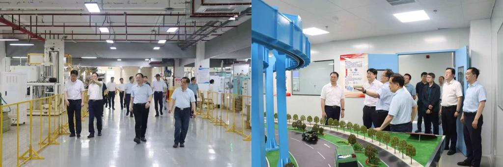韩尚峰、刘波一行还考察调研了国家稀土功能材料创新中心,参观了中心展厅、科研平台,以及中心稀土永磁悬浮轨道交通系统工程试验线、稀土光纤中试示范线等10余项实现产业化技术的中试线项目,重点了解了依托创新中心信息化平台申报获批的江西省行业型数字化转型促进中心和中心稀土功能材料智能制造及信息化技术创新平台。