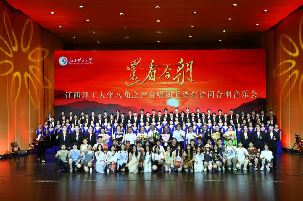 八角之声合唱团精心筹备、全新创排的“还看今朝——毛泽东诗词合唱音乐会”于6月8日在赣州大剧院·大剧场公演,并通过网络直播让这份艺术瑰宝跨越时空,走进千家万户。这场倾力打造的音乐盛宴以18首毛泽东诗词为内容,融合多元艺术形式,重现了革命历程的波澜壮阔,为观众带来沉浸式的红色艺术体验。