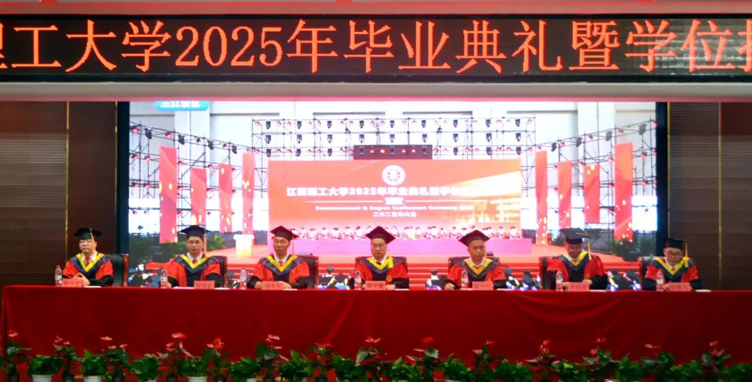 2025年毕业典礼暨学位授予仪式在赣州三江校区主会场、南昌校区分会场以及线上网络直播的方式举行。在家校领导杨斌、葛世荣、徐志峰、廖春发、黄志繁、董冰岩、熊志华、刘飞、汪航及各学院和相关职能部门负责人、教师代表、毕业生代表、在校生代表和家长代表分别在赣州、南昌两地出席毕业典礼。典礼由校党委常委、副校长熊志华主持。