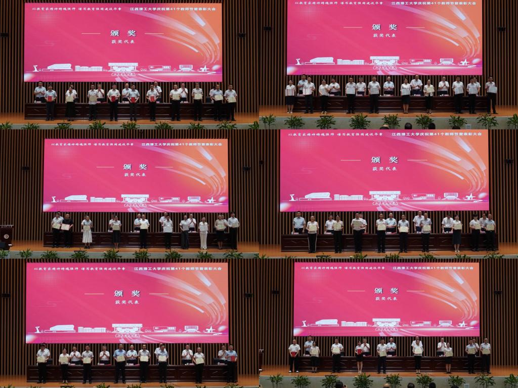 庆祝第41个教师节暨表彰大会在三江校区东园志远会议1号厅召开,南昌校区、先进铜产业学院(鹰潭)分会场同步视频参加。全体在家校领导、党委常委、赣州校区各学院党政主要负责同志、南昌校区管委会全体班子成员、先进铜产业学院(鹰潭)全体班子成员以及各校区教师代表参加会议。大会由中国工程院院士、校长葛世荣主持。