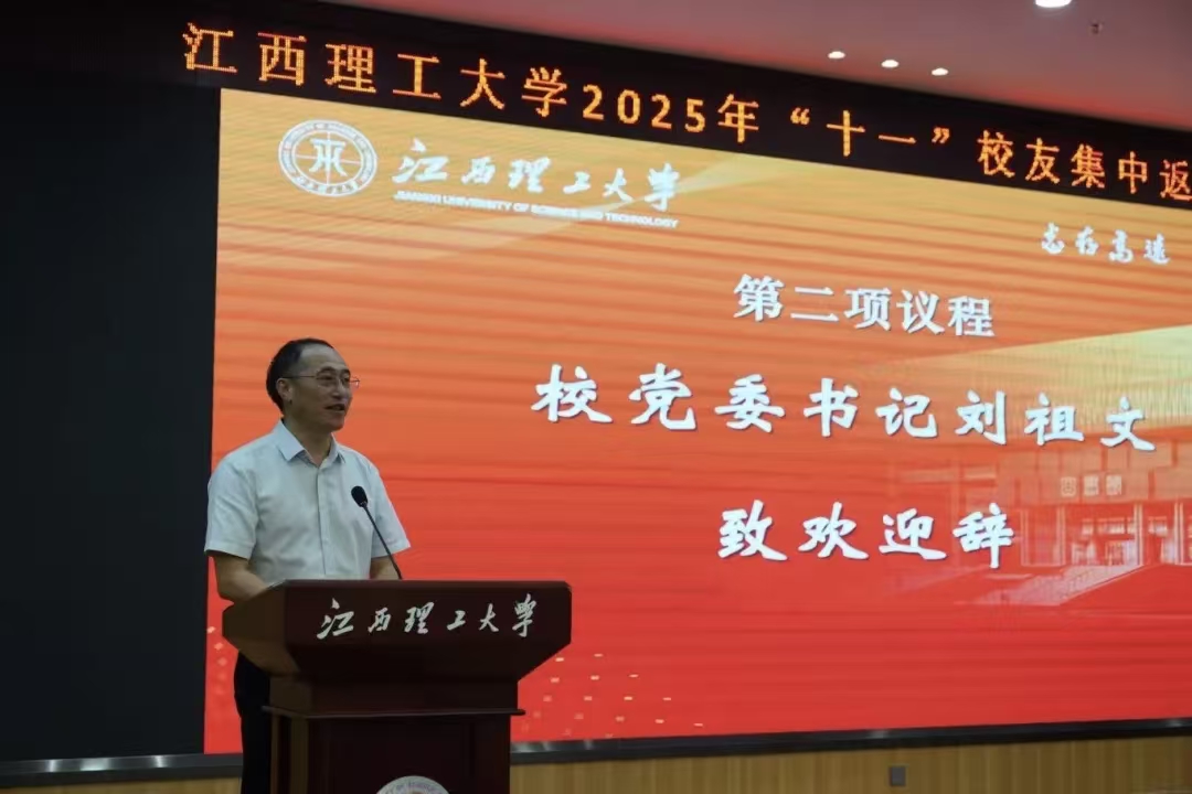 刘祖文代表学校致欢迎辞。他向返校校友表示热烈欢迎与诚挚问候,并从综合实力、学科建设、人才培养、高端人才、科技创新、服务社会等六个方面介绍了学校近年来取得的显著成绩。刘祖文表示,广大校友是学校事业发展的参与者、建设者和支持者,从江西冶金学院、南方冶金学院到抖阴