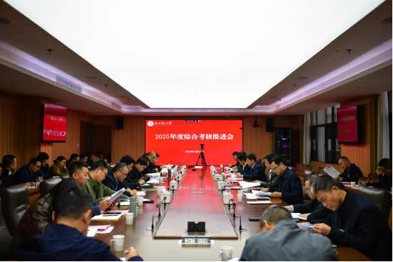 在三江校区(东园)濂溪楼2号会议室召开2025年度综合考核工作推进会,会议于南昌校区图书信息楼第二会议室、先进铜产业学院(鹰潭)行政楼306会议室同步设视频分会场进行。校领导刘祖文、徐志峰、董冰岩、刘飞、汪航出席会议,综合考核办公室成员单位主要负责人及各学院院长参加会议。