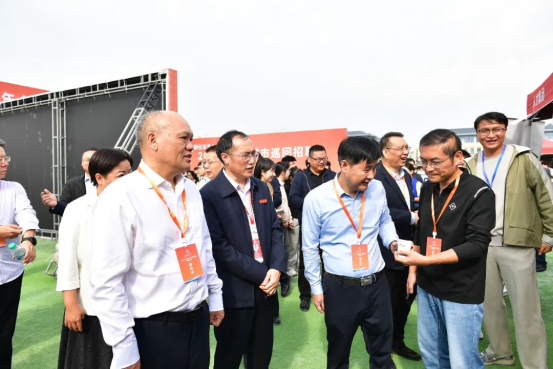 校内外领导与参会企业、毕业生亲切交流了解企业需求、行业发展趋势以及学生的就业意愿等情况。随后,领导一行参观了抖阴