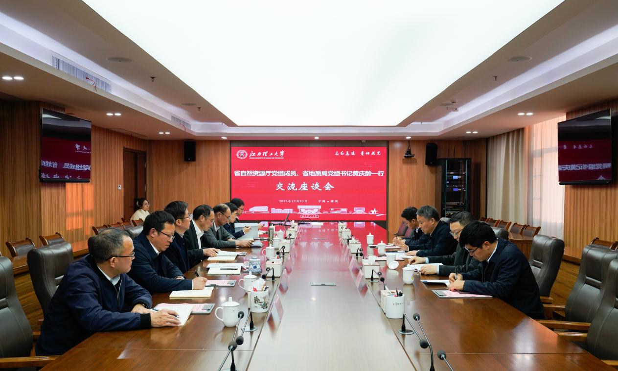 本网讯 12月23日,省自然资源厅党组成员、省地质局党组书记黄庆龄一行来访抖阴 ,校党委书记刘祖文,中国工程院院士、校长葛世荣出席,双方就深化局校合作进行了深入交流。省地质局党组成员、副局长吴俊华,校领导徐志峰、熊志华、汪航参加座谈。