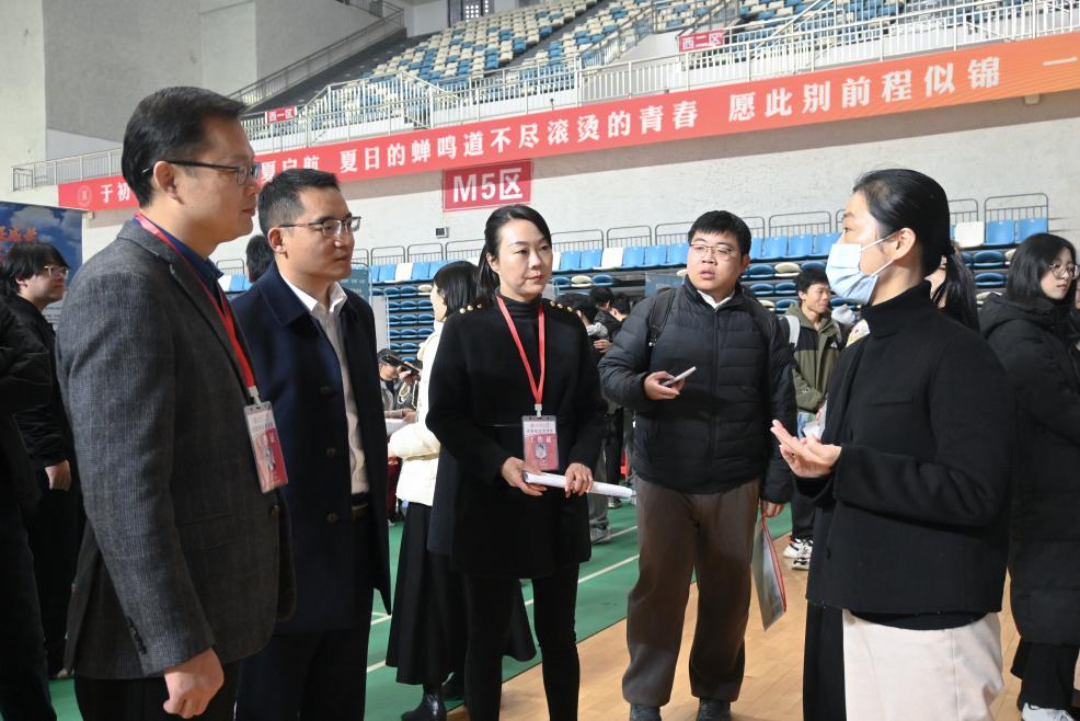 江西省教育评估监测研究院党委委员、副院长朱易,校党委常委、副校长熊志华等领导深入招聘会现场,详细了解企业人才需求及学生求职进展。