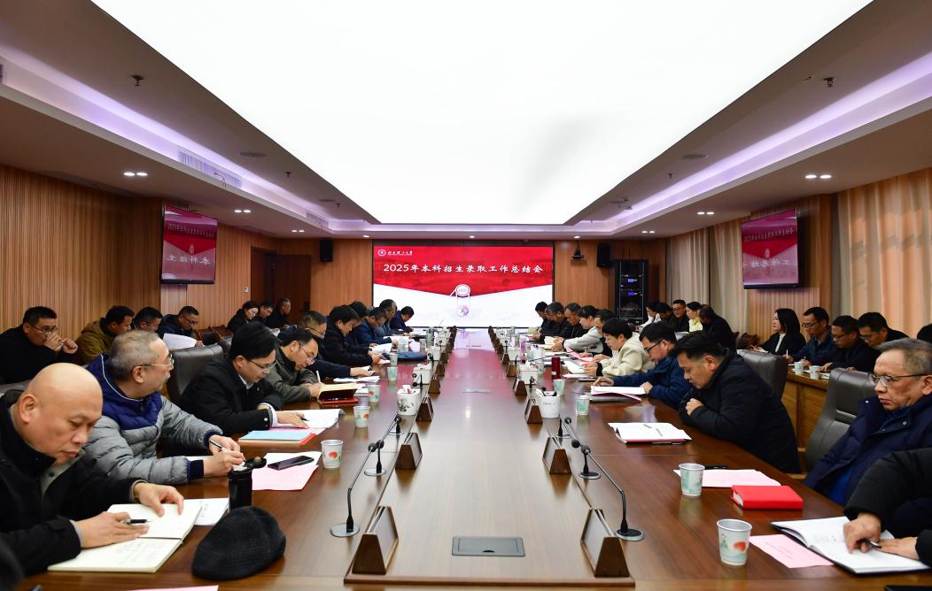 会上,宁洁围绕落实刘祖文书记提出的工作要求,作出部署并强调相关工作。招生就业处处长邓晓宇汇报了2025年本科招生录取工作总结情况,并对2026年本科招生宣传工作进行安排。土木与测绘工程学院院长丰土根、冶金工程学院院长梁勇及经管学院院长朱文兴进行了交流发言。
