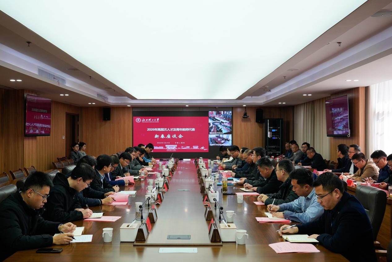 2026年高层次人才及青年教师代表新春座谈会在三江校区举行。中国工程院院士、校长葛世荣,校党委副书记徐志峰出席会议。学校相关职能部门负责人与高层次人才、青年教师代表参加会议。南昌校区和先进铜产业学院同步视频参会。会议由徐志峰主持。