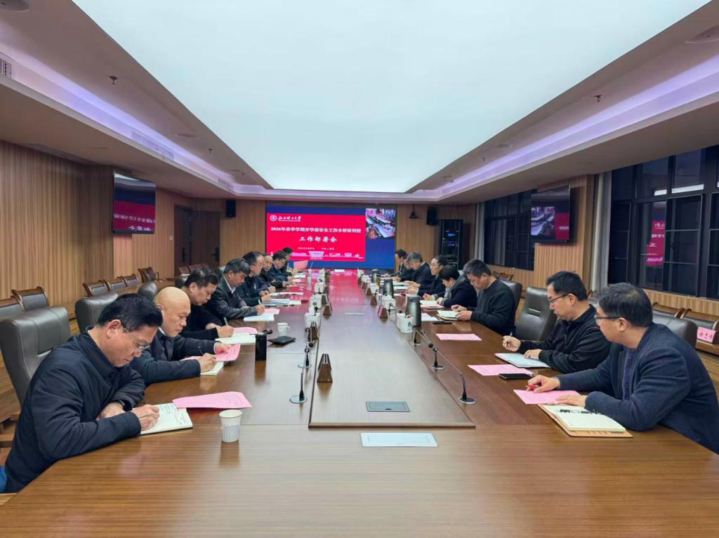 2026年春季学期开学前安全工作情况分析研判暨工作部署会在三江校区濂溪楼2号会议室召开。校党委书记刘祖文,校党委常委、副校长董冰岩、宁洁,校党委常委、宣传部部长盛晓明,校党委常委、统战部部长汪锋锁出席会议,相关职能部门负责人参加会议。会议由董冰岩主持。