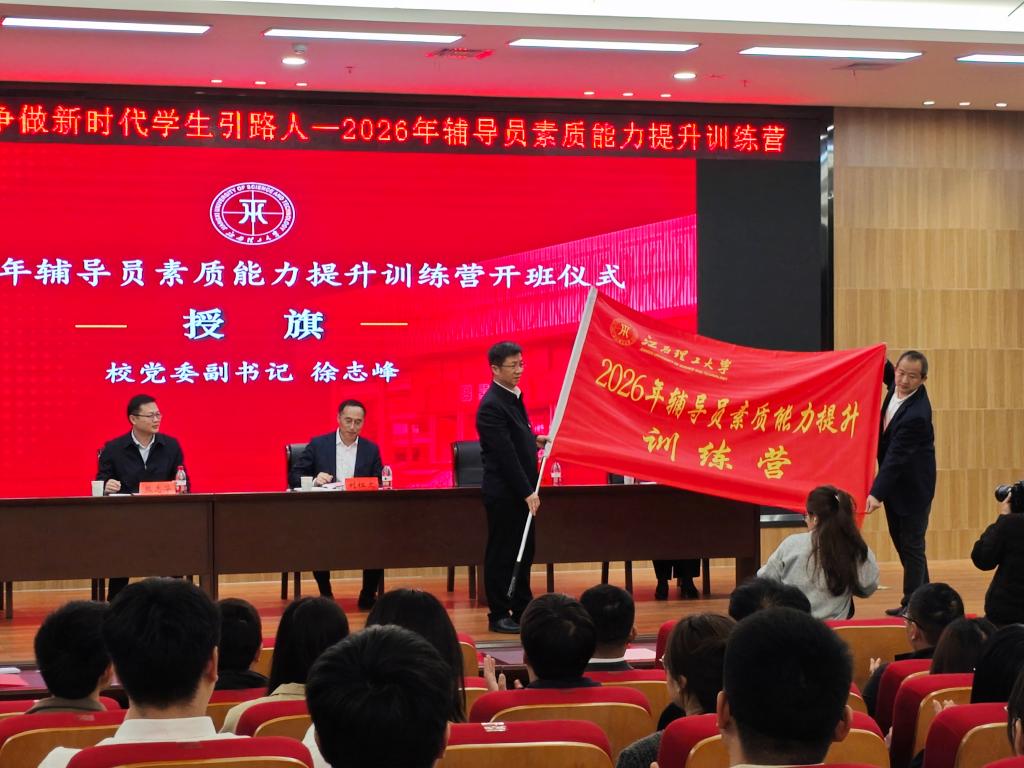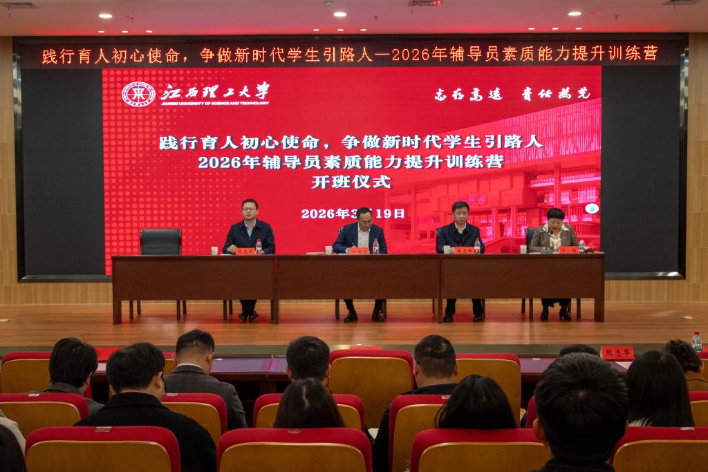 2026年辅导员素质能力提升训练营在三江校区图书馆报告厅正式开营。校党委书记刘祖文,校党委副书记徐志峰,校党委常委、副校长熊志华、宁洁出席会议。党委研究生工作部、党委学生工作部、国际教育学院相关人员及全体专兼职辅导员参加会议。南昌校区各学院、先进铜产业学院同步视频参会。会议由校党委常委、副校长宁洁主持。