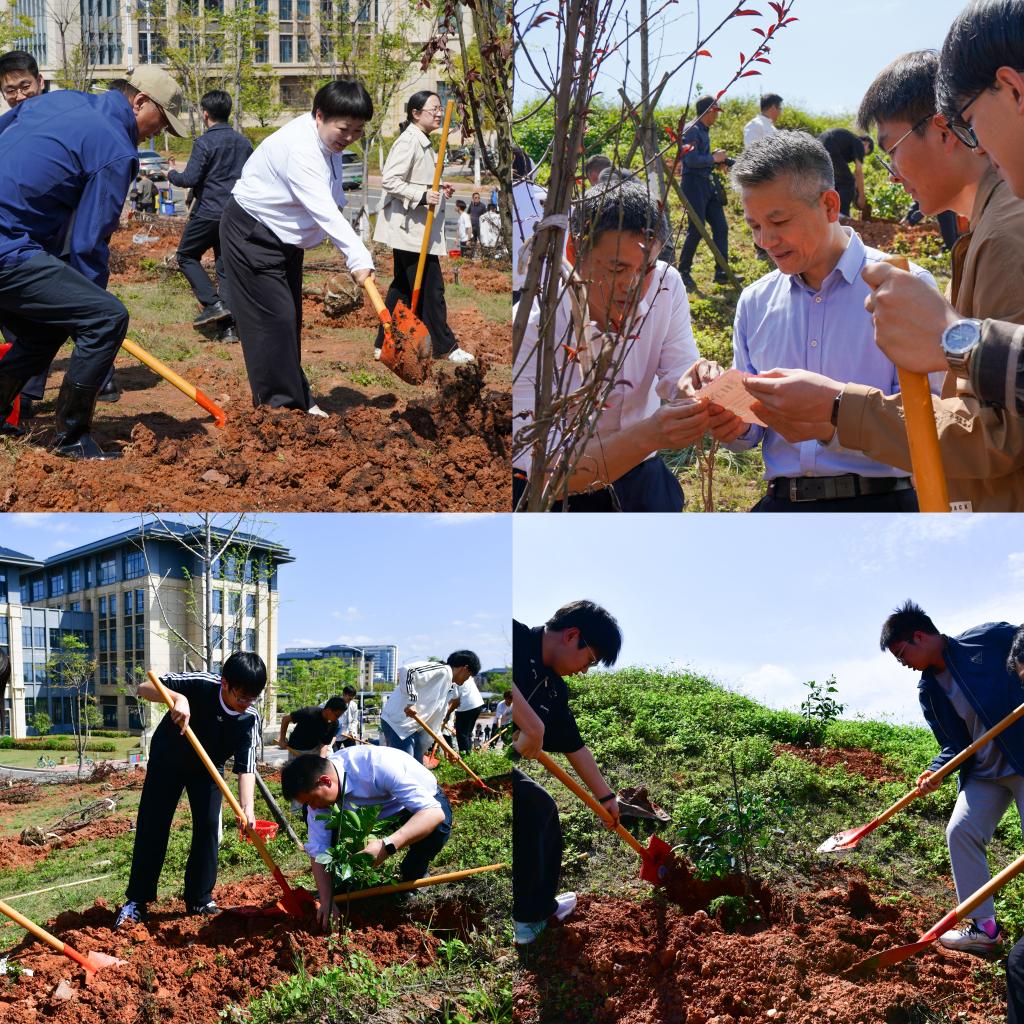 在大学生公园 “师德园”“故乡园” 植树区举行主题植树活动。校党委书记刘祖文,中国工程院院士、校长葛世荣,党委常委、副校长董冰岩、宁洁,党委常委、党委宣传部部长汪锋锁出席活动。党委办公室、校长办公室、学工部、教师工作部、总务部、人工智能学部等单位负责人,赣州校区各学院党委(党总支)副书记、辅导员及学生代表参加。