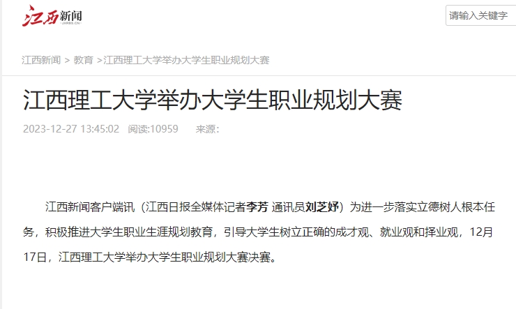 江西新闻客户端讯(江西日报全媒体记者李芳通讯员刘芝妤)为进一步落实立德树人根本任务,积极推进大学生职业生涯规划教育,引导大学生树立正确的成才观、就业观和择业观,12月17日,抖阴