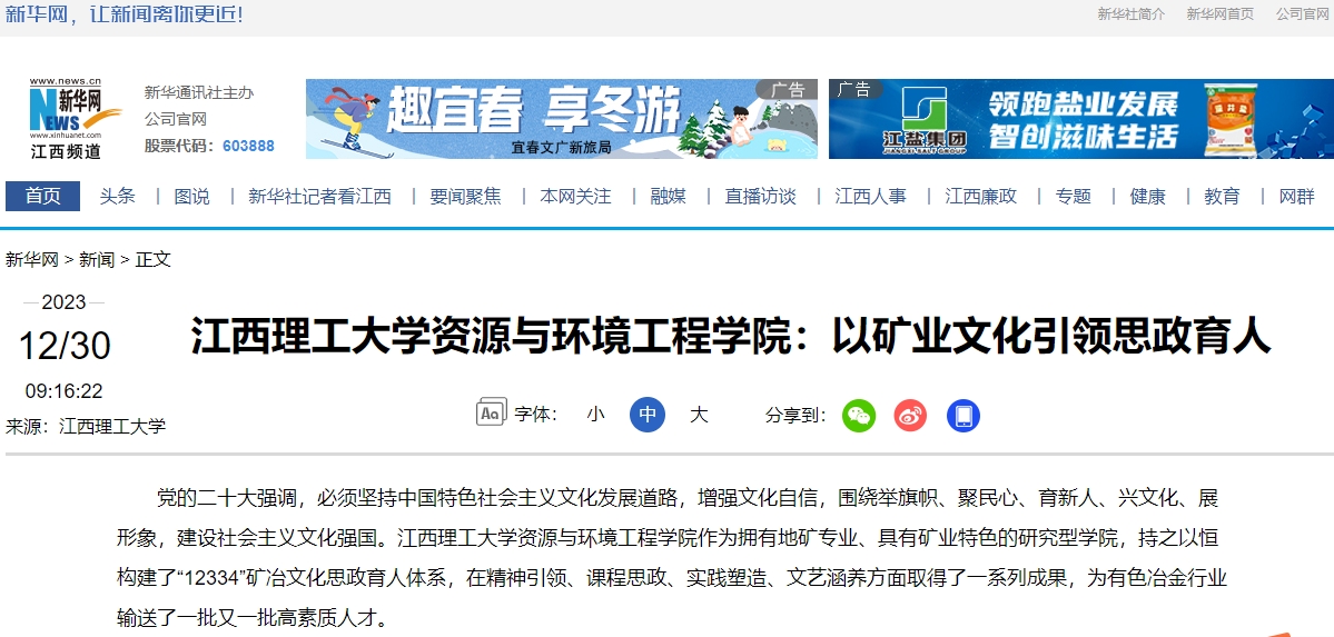 资源与环境工程学院作为拥有地矿专业、具有矿业特色的研究型学院,持之以恒构建了“12334”矿冶文化思政育人体系,在精神引领、课程思政、实践塑造、文艺涵养方面取得了一系列成果,为有色冶金行业输送了一批又一批高素质人才。