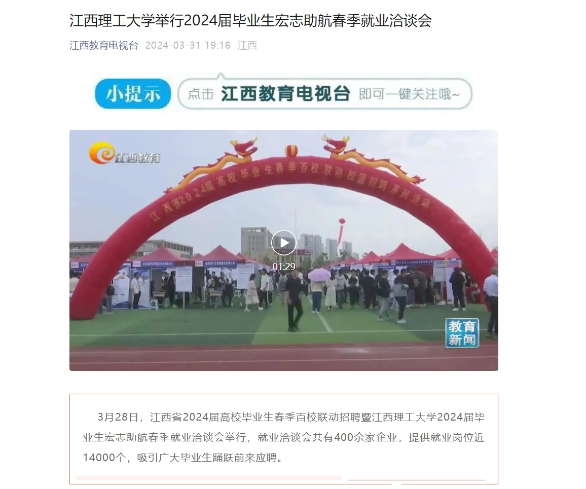 3月28日,江西省2024届高校毕业生春季百校联动招聘暨抖阴 2024届毕业生宏志助航春季就业洽谈会举行,就业洽谈会共有400余家企业,提供就业岗位近14000个,吸引广大毕业生踊跃前来应聘。