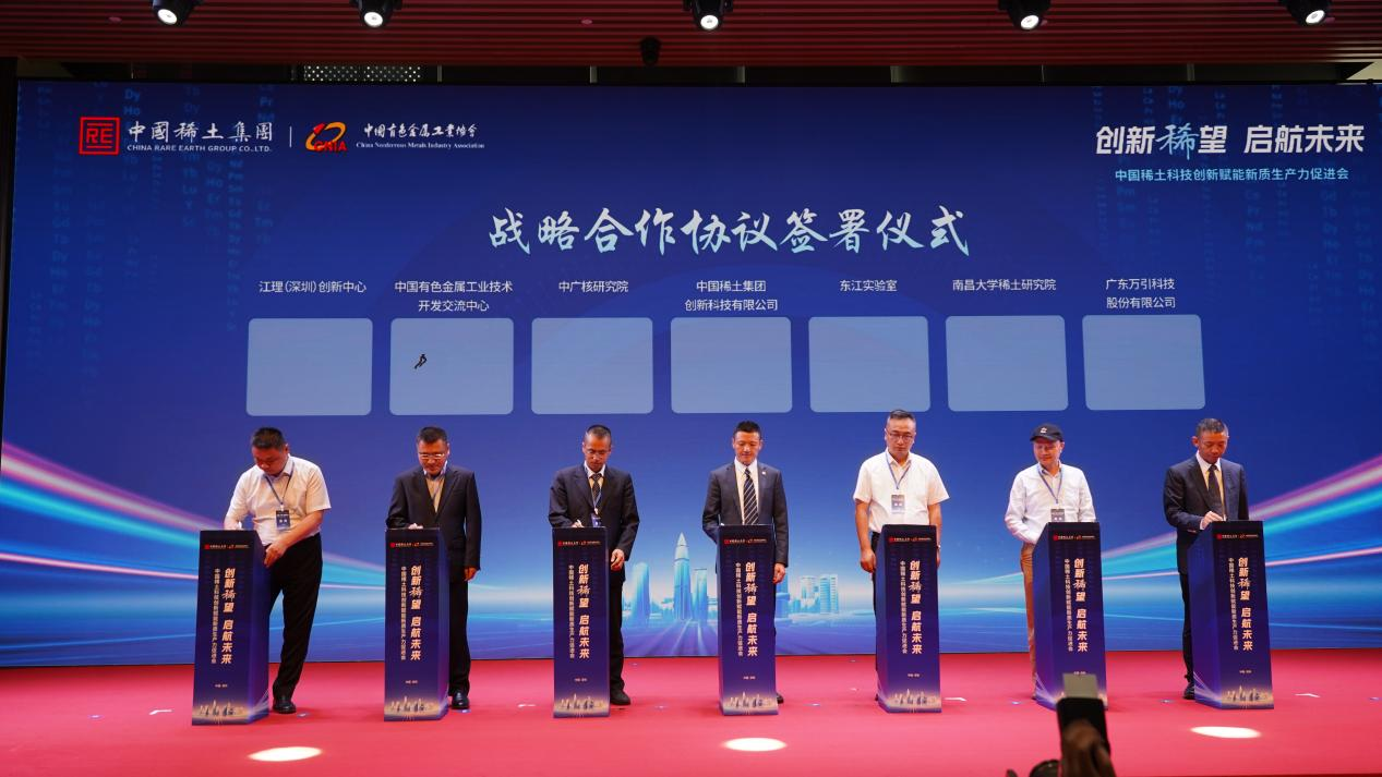 揭牌仪式后,中国稀土集团和中国有色金属工业协会举办了中国稀土科技创新赋能新质生产力促进会。会上举行了相关签约仪式、院士专题报告、产业对接会。会上,抖阴