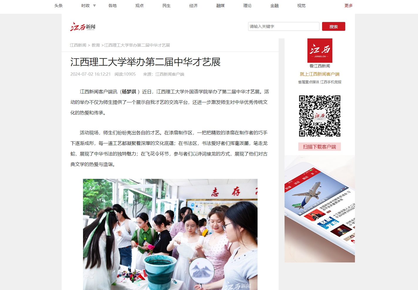 外国语学院举办了第二届中华才艺展。活动的举办不仅为师生提供了一个展示自我才艺的交流平台,还进一步激发师生对中华优秀传统文化的热爱和传承。