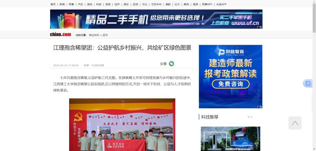 至今,团队的项目已在信丰、安远等6县15村开花结果,成效斐然。清澈之水激活了农田的勃勃生机,为农户开启好水促丰收新局面。 三位一体发展,打造先锋队伍 团队尤为重视教育的纽带作用,推行“科研+公益+教育”的三位一体育人模式。团队通过政校企农协同合作,创建实践基地,让学生参与到稀土绿色提取的实践中,同时,在公益探索中,学生们不仅能学习到专业知识,还能深刻理解科研背后的伦理责任与社会价值,已有多批学生从中受益,部分学生毕业后选择投身于环保与可持续发展领域,成为行业新生力量。