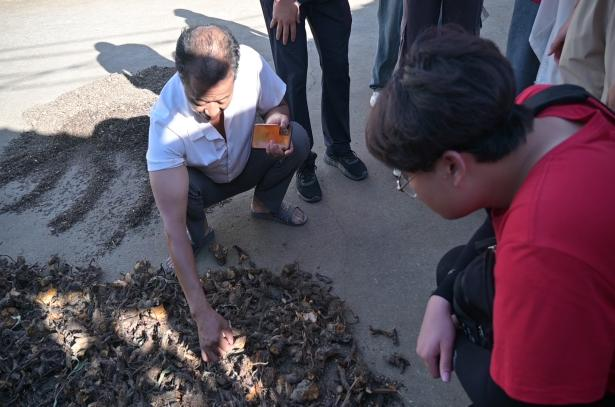 随后,实践队来到唐虞村药材基地,基地老板热情地介绍道:“我们基地主要负责种植、采摘、加工各种中药材,再销往各地中药馆。”邓路建表示,该药材基地雇佣村里中老年劳动力,解决了唐虞村中老年劳动力就业以及收入等问题。