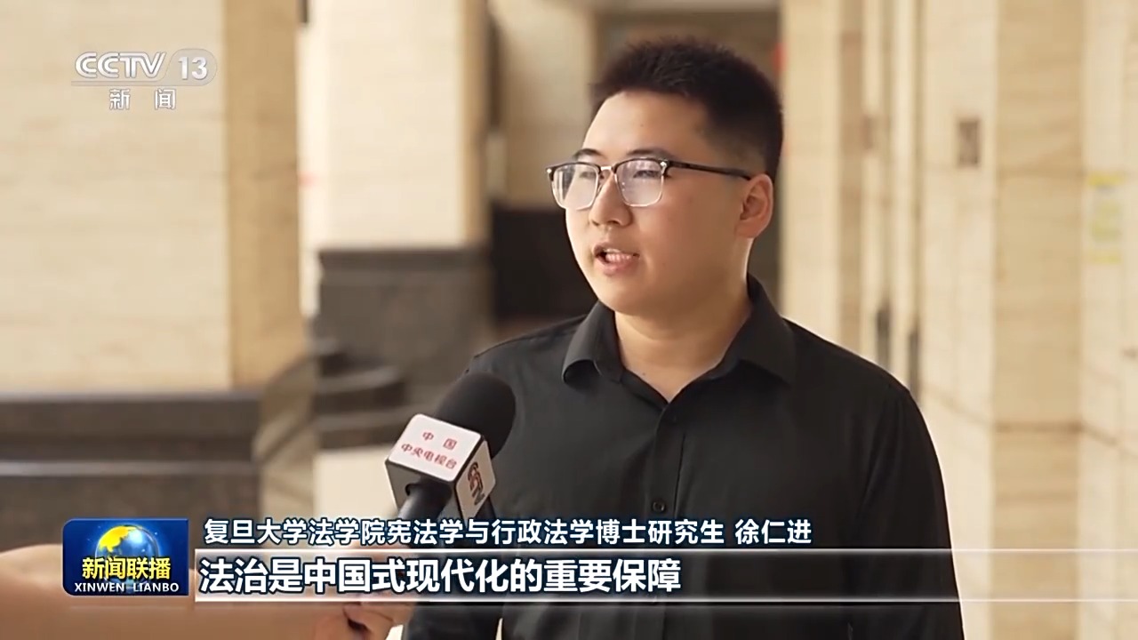 复旦大学法学院宪法学与行政法学博士研究生 徐仁进:法治是中国式现代化的重要保障。全会对完善中国特色社会主义法治体系作出部署。我们新时代法学学子深感使命在肩。我们将自觉将全会的决策部署转化为学习研究的课题,努力成长为一名合格的复合型法学人才,为在法治轨道上全面建设社会主义现代化国家作出青年应有的贡献。