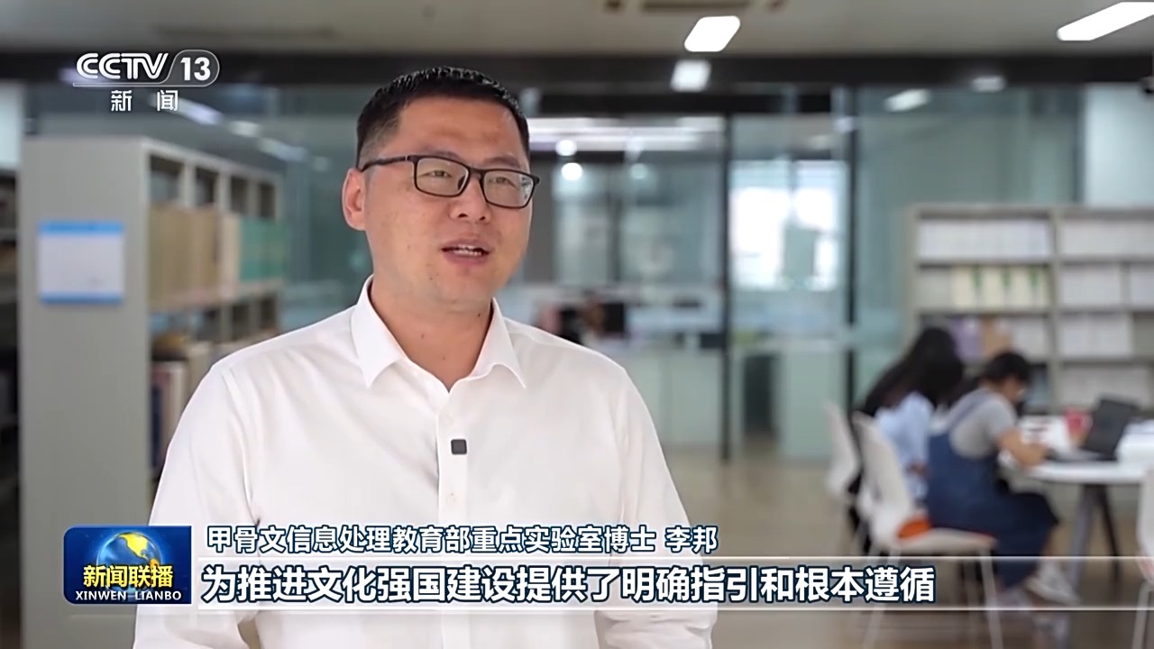 甲骨文信息处理教育部重点实验室博士 李邦:作为文化研究领域的青年,我们倍感振奋的是,全会对文化建设进行了专题部署,为推进文化强国建设提供了明确指引和根本遵循。我们一定会牢记习近平总书记的嘱托,传承甲骨文这一冷门绝学,在推进科技强国、文化强国建设的伟大事业中展现青春作为。