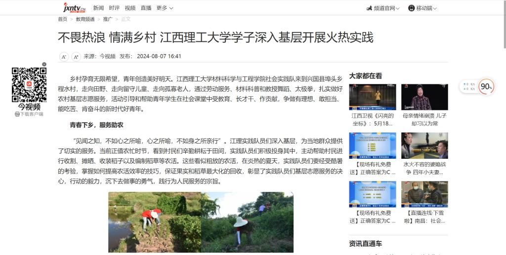 材料科学与工程学院社会实践队来到兴国县埠头乡程水村,走向田野、走向留守儿童、走向孤寡老人,通过劳动服务、材料科普和教授舞蹈、太极拳,扎实做好农村基层志愿服务,活动引导和帮助青年学生在社会课堂中受教育、长才干、作贡献,争做有理想、敢担当、能吃苦、肯奋斗的新时代好青年。