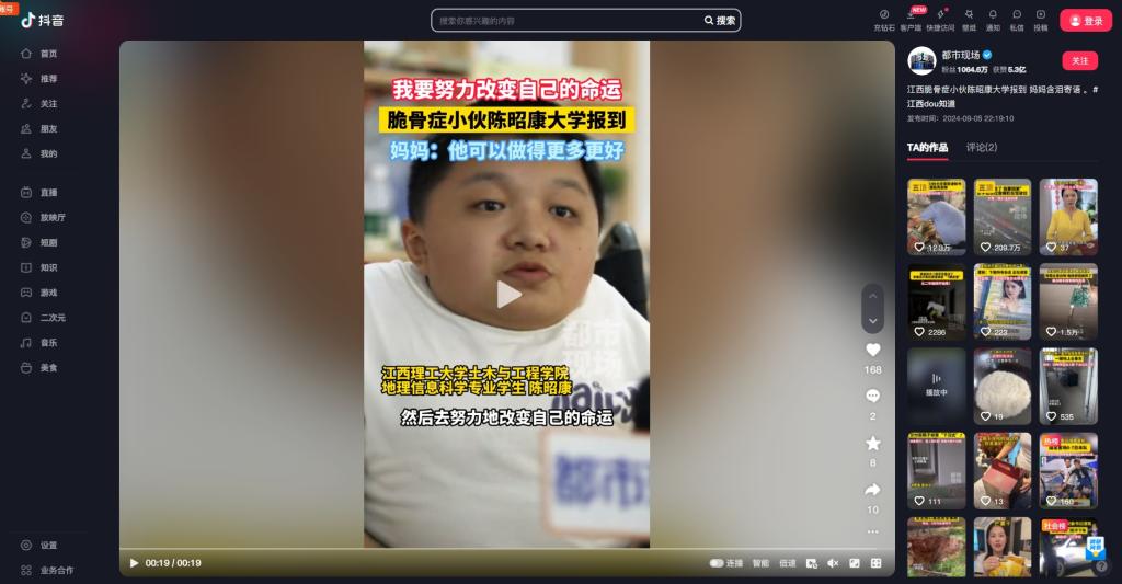 上一条:《江西广播电视台客户端》:赣州:你好新同学!19岁“脆骨症”小伙今天上大学 下一条:《江西教育电视台》:抖阴 :生日祝福迎新生