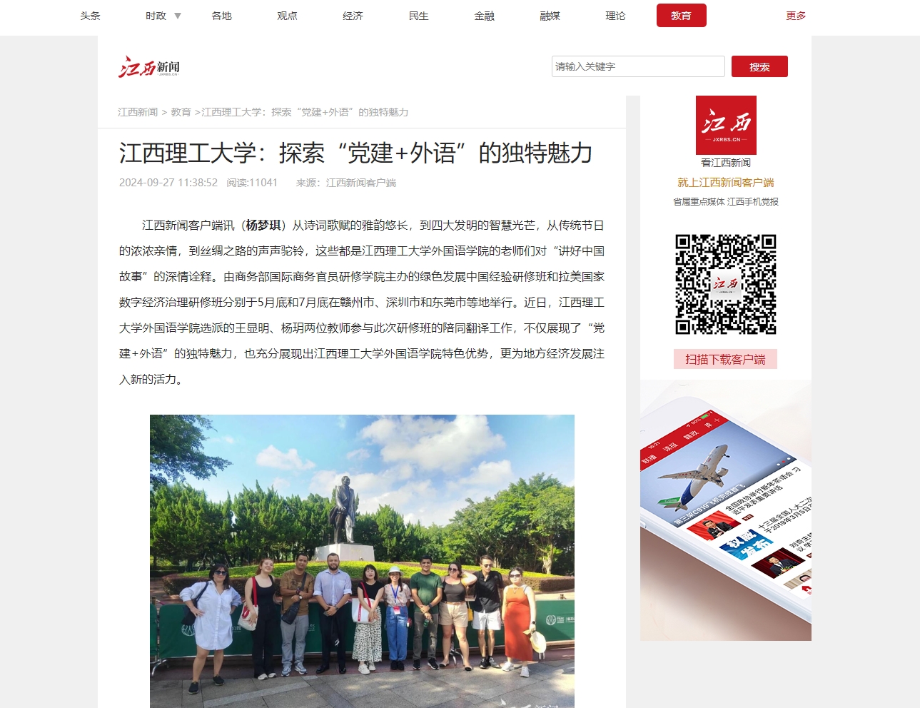 外国语学院的老师们对“讲好中国故事”的深情诠释。由商务部国际商务官员研修学院主办的绿色发展中国经验研修班和拉美国家数字经济治理研修班分别于5月底和7月底在赣州市、深圳市和东莞市等地举行。近日,抖阴