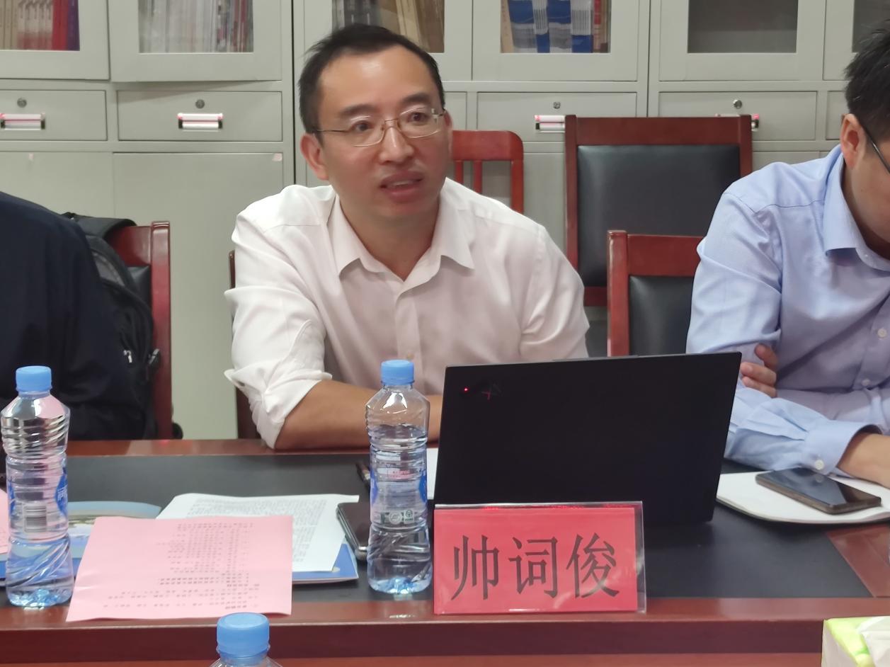 帅词俊在致辞中介绍了学校及学院的人才政策、学院目前的学科建设情况以及学院后期的发展规划,并从学院概况、师资队伍、人才培养、科学研究、学科建设、国际合作等多个方面对学院的情况进行了全面细致的介绍。