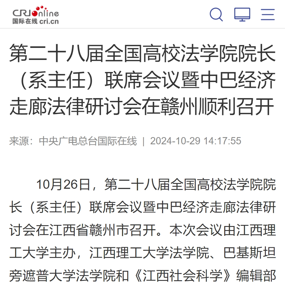 10月26日,第二十八届全国高校法学院院长(系主任)联席会议暨中巴经济走廊法律研讨会在江西省赣州市召开。本次会议由抖阴