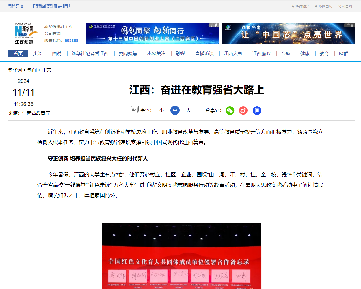近年来,江西教育系统在创新推动学校思政工作、职业教育改革与发展、高等教育质量提升等方面积极发力,紧紧围绕立德树人根本任务,奋力书写教育强省建设支撑引领中国式现代化江西篇章。