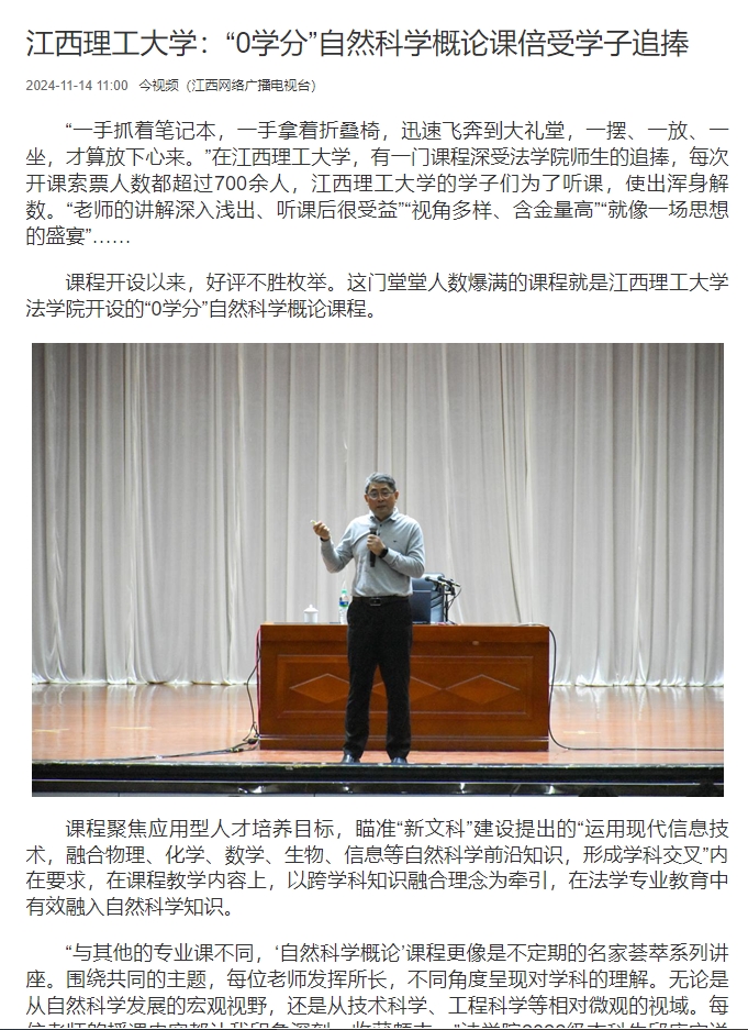 法学院副院长张奇表示。“学生对这个课程反响积极、评价很高、期待很多。学院将继续坚持吸收最前沿的内容、集中优秀的教师、给予全面的保障,开设好自然科学概论这门重要课程。”