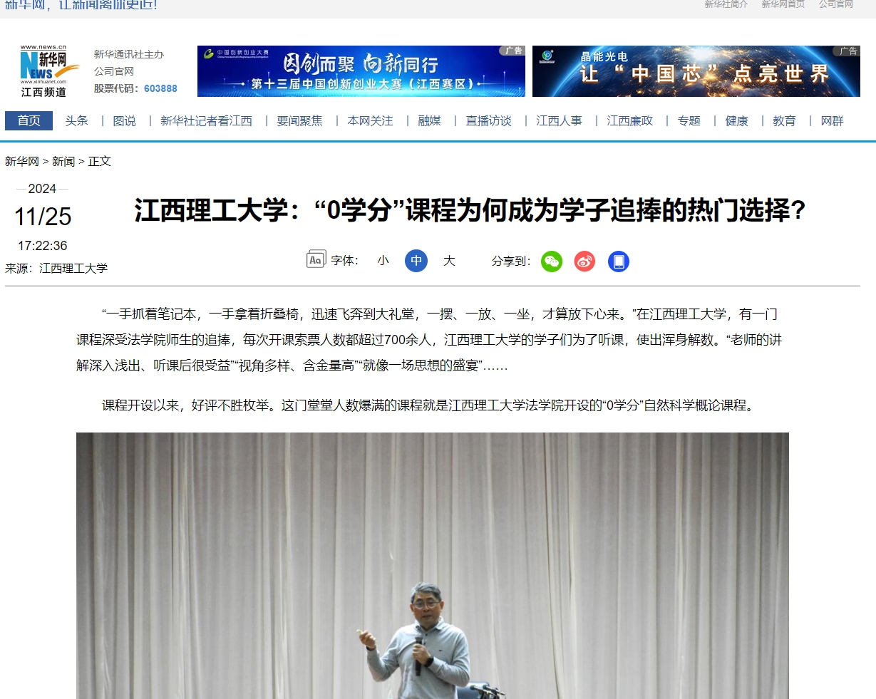 法学院副院长张奇表示。“学生对这个课程反响积极、评价很高、期待很多。学院将继续坚持吸收最前沿的内容、集中优秀的教师、给予全面的保障,开设好自然科学概论这门重要课程。”