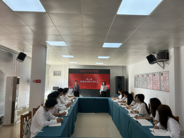 课堂上,陈楠楠老师围绕“什么是全过程人民民主”这一核心问题,从民主的起源出发,在对人类政治文明史回顾中,通过与西式民主对比引出全过程人民民主的内涵。阐述了全过程人民民主是社会主义民主政治的本质属性,是过程民主和成果民主、程序民主和实质民主、直接民主和间接民主、人民民主和国家意志的相统一。全过程人民民主具有全链条、全方位、全覆盖等鲜明特征。