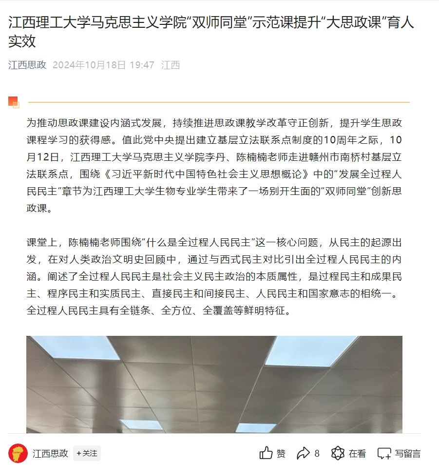 马克思主义学院李丹、陈楠楠老师走进赣州市南桥村基层立法联系点,围绕《习近平新时代中国特色社会主义思想概论》中的“发展全过程人民民主”章节为抖阴