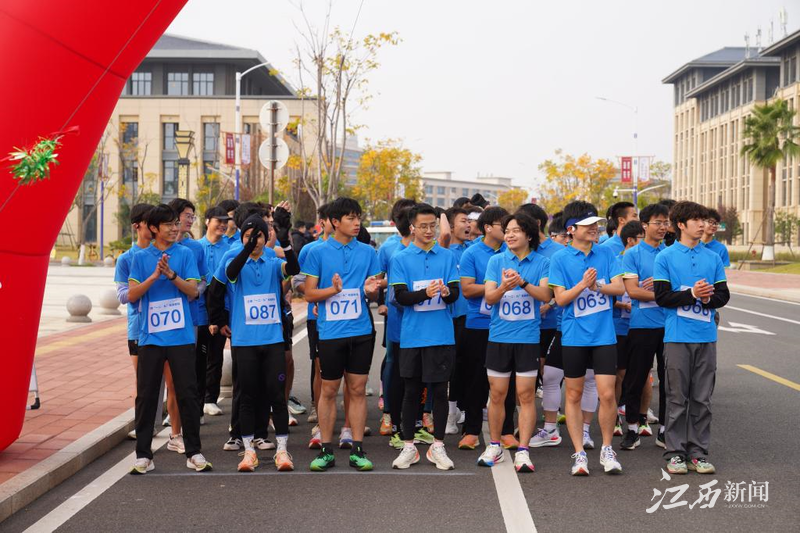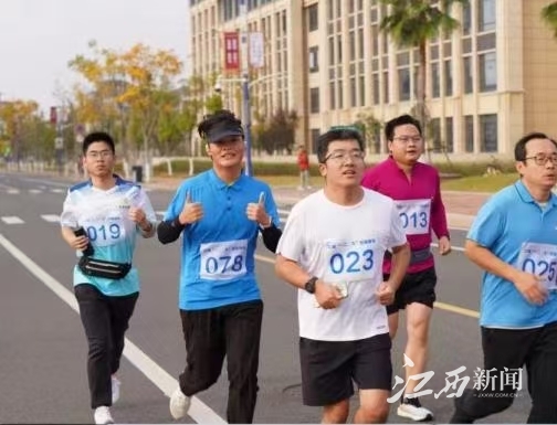 活动现场气氛热烈,参赛者们精神抖擞。教职工队伍格外引人注目,不少年逾五十的老师身姿矫健地奔跑在队伍中,他们用实际行动诠释着对运动的热爱和对健康生活的追求。年轻的学生们也毫不逊色,充满活力的身影在校园道路上穿梭,展现出青春的朝气与蓬勃向上的力量。师生共同奔跑,汗水挥洒在赛道上,青春洋溢在校园内,成为了江理一道靓丽的冬景。